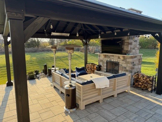 Hardscapes include paver patios, seat walls, retaining walls, fire pits, fire places, pergolas, pavilions and more. These hardscapes are the main elements of outdoor living spaces, creating designated areas for gathering and spending time with family and friends.